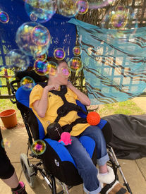 A Pyramid of Arts project, working with members of the Bramley community with PMLD. Before the pandemic the group ran in a community centre, but since the group has resumed we have taken the session to the members residence. In doing so we are creating an immersive, sensory experience in the comfort of their home.Based on the theme of Under the Sea, we listened to music, explored objects, and performed a sensory story, created exclusively for the group.